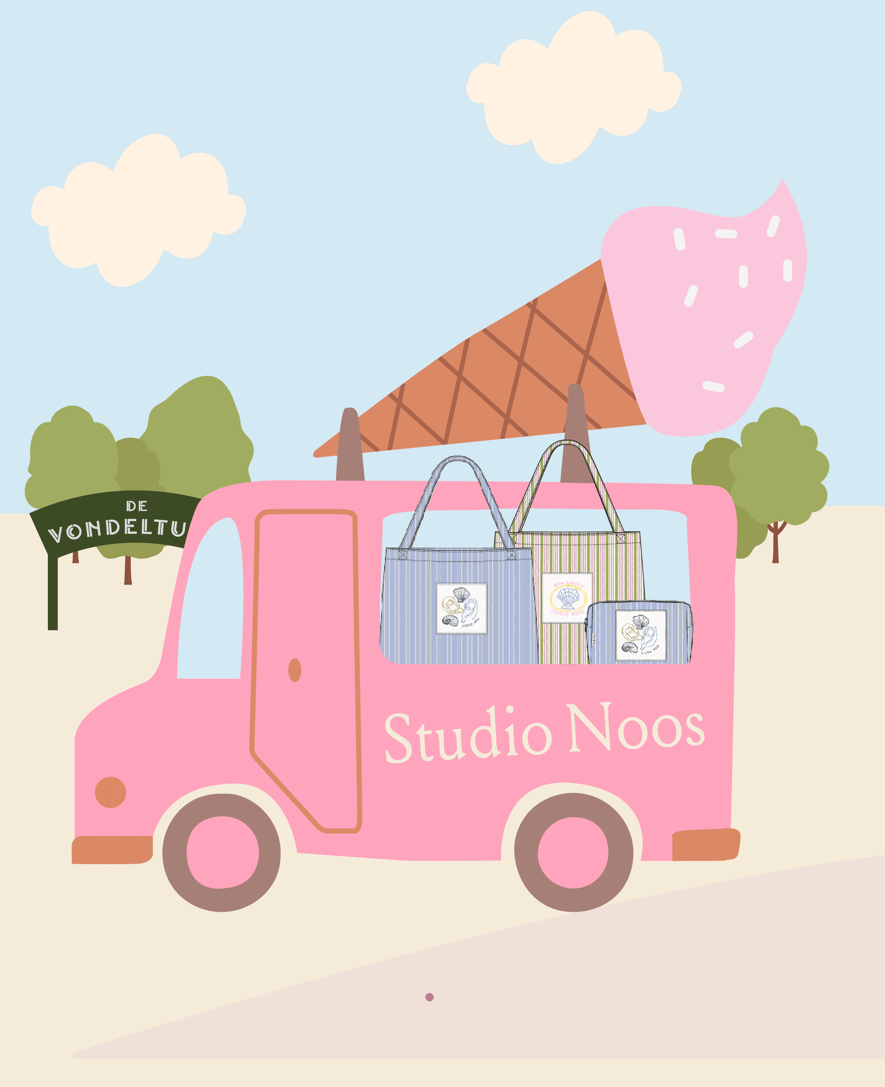 For Studio Noos, we worked on strengthening the brand through new visual assets and marketing materials. This included graphic design for email flows, illustrations, offline activations and a custom bus wrap design. The focus was on keeping the brand recognisable, warm and consistent across every touchpoint.